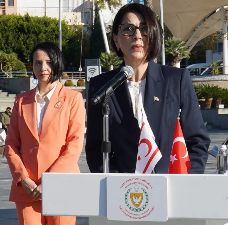 KKTC Antalya Başkonsolosu Aslı Erkmen, yaptığı konuşmada KKTC'nin kuruluş yıl dönümüne erişmenin gurur ve heyecanını yaşadıklarını belirtti. Erkmen, "Kıbrıs Türk halkının yıllarca en zor koşullar altında verdiği özgürlük, bağımsızlık ve varoluş mücadelesinin, kendi devletlerinin çatısı altında yaşama iradesiyle taçlandırdığı Kuzey Kıbrıs Türk Cumhuriyeti'nin 42'nci kuruluş yıl dönümüne erişmenin gururu ve heyecanını yaşıyorum. En büyük bayramımız olan Cumhuriyet Bayramı'mız kutlu olsun" dedi.