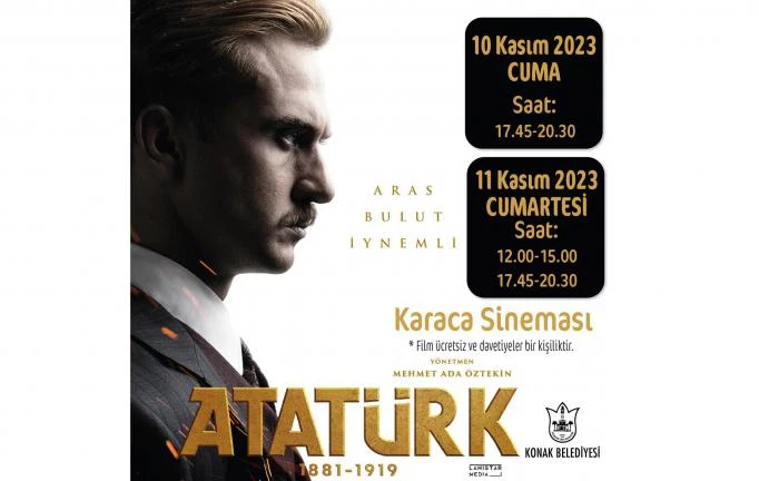Mehmet Ada Öztekin’in yönetmenliğini yaptığı, yetenekli oyuncu Aras Bulut İynemli’nin ise Mustafa Kemal Atatürk’ü canlandırdığı filmin gösterimleri Karaca sinemasında yapılacak. Mustafa Kemal Atatürk’ün çocukluk yıllarından Milli Mücadele’ye giden yaşam öyküsünün anlatıldığı filmin 10 Kasım’daki gösteriminde Konak Belediye Başkanı Abdül Batur da seyirciler arasında yer alacak. Karaca sinemasında, 10 Kasım tarihinde saat 17.45 ve 20.30 seansları, 11 Kasım’da ise 12.00, 15.00, 17.45 ve 20.30 seansları için sınırlı sayıdaki ücretsiz davetiyeler 7 Kasım Salı günü saat 18.00’den itibaren Türkan Saylan Kültür Merkezi’nden temin edilebilecek.