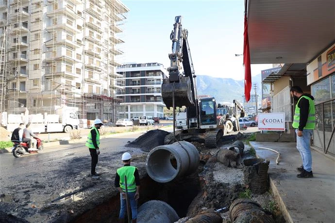 Caddesi’ni de kapsayan yağmursuyu çalışması ile özellikle kuzeyden gelen