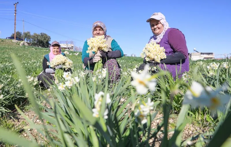Mersin Büyükşehir Belediyesi, kırsal kalkınmayı destekleyen projeleriyle üreticilere ve aile ekonomilerine katkı sağlamaya devam ediyor. Tarımsal Hizmetler Dairesi Başkanlığı tarafından yürütülen ‘Nergis Soğanı Dağıtım Projesi’ kapsamında desteklenen üreticiler, mis kokulu nergis çiçeklerinin hasadını yapıyor. Tarsus’un Kaklıktaşı Mahallesi’nde ekilen soğanlardan çıkan nergisler, kadınlar tarafından toplanıyor, demetleniyor ve ülkenin dört bir yanına gönderiliyor.