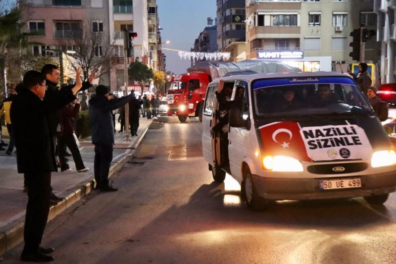 Nazilli Belediyesi ve Nazilli Kaymakamlığı’nın ortaklaşa yürüttüğü yardım kampanyası ile afet bölgesinde yaralar sarılmaya devam ediyor. Depremin yaşandığı ilk günden itibaren büyük bir özveriyle koordine olan Nazilli Belediyesi beşinci gün de de devam ediyor.