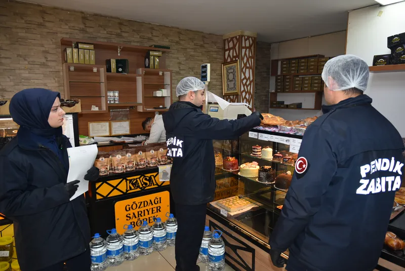 Pendik Belediyesi Zabıta ekipleri, ilçedeki fırın ve unlu mamul işletmelerinde hijyen, gramaj ve fiyat etiketi kontrolleri gerçekleştiriyor.
