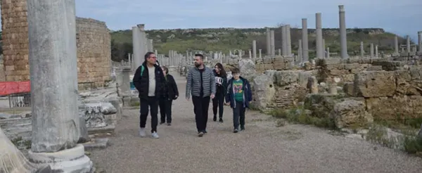 Yarıyıl tatilinin yaşandığı şu günlerde, hava durumunun mevsim normallerinin üzerinde seyretmesi nedeniyle diğer illerden gelen aileler, çocuklarıyla Perge Antik Kenti’ni baştan sona gezme fırsatı buluyor.