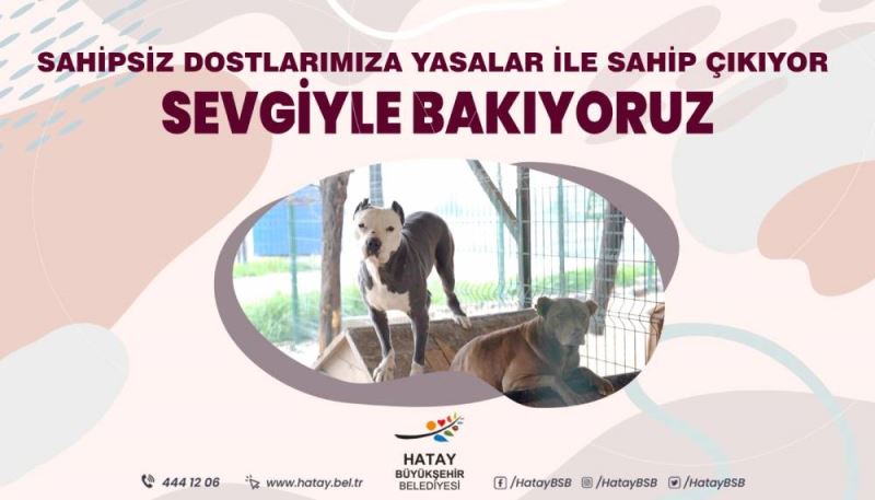 Hatay Büyükşehir Belediyesi Sağlık ve Sosyal Hizmetler Dairesi Başkanlığı olarak sahipsiz hayvanlara yönelik çalışmalarımızı, 5216 sayılı Büyükşehir Belediyesi Kanunu ile 5199 sayılı Hayvanları Koruma Kanunu ve Uygulama Yönetmeliği doğrultusunda Defne ilçesi sınırlarında bulunan Sahipsiz Hayvan Bakım ve Rehabilitasyon Merkezi’nde yürütmekteyiz.