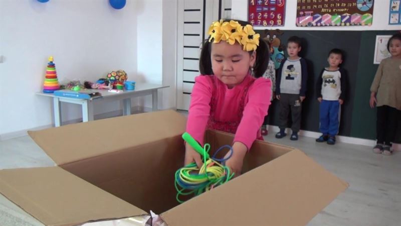 Etimesgut Belediyesi’nin Tanrı Dağları’ndaki Kırgızistan’ın Narın şehrine yaptığı Atatürk Kreş ve Anaokulu öğrencileri depremzede çocukları unutmadılar, en sevdiği oyuncakları depremzede çocuklara gönderdiler.