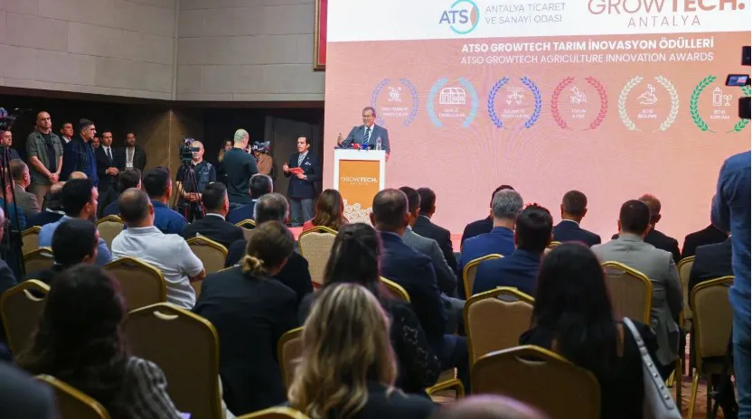 Growtech.Antalya Fuarı kapsamında, Antalya Ticaret ve Sanayi Odası (ATSO) bu yıl 8’incisi düzenlenen ATSO Growtech Tarım İnovasyon Ödülleri sahibini buldu. Ödül törenine Antalya Valisi Hulusi Şahin, Büyükşehir Belediye Başkan Vekili Büşra Özdemir, ATSO Başkanı Yusuf Hacısüleyman, Tarım ve Orman İl Müdürü Şakir Fırat Erkal, Batı Akdeniz İhracatçılar Birliği (BAİB) Başkanı Ümit Mirza Çavuşoğlu, Antalya Ticaret Borsası (ATB) Yönetim Kurulu Üyesi Ragıp Gök, Antalya Organize Sanayi İş İnsanları Derneği (OSİAD) Başkanı Mehmet Atılgan ve sektör temsilcileri katıldı. Fuarda sera ve sulama teknolojileri, tohum, fide, bitki besleme, bitki koruma, akıllı tarım teknolojileri ve kamu özel ödülü olmak üzere 7 farklı kategoride ödül dağıtıldı.