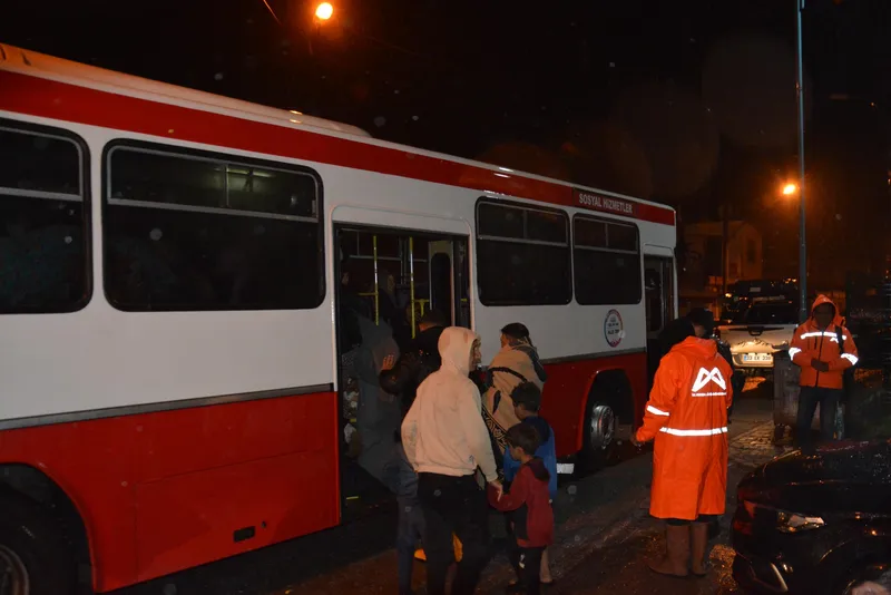 İlçe Kaymakamlığı ile koordineli yürütülen çalışma kapsamında, taşkın nedeniyle çadır alanları suyla dolan yaklaşık 100 kişi, toplu taşıma araçlarıyla Yeşiltepe'den alınarak Mehmet Çelebi Spor Salonu'na nakledildi. Aralarında çocuk ve kadınların da bulunduğu işçilere, Büyükşehir Belediyesi tarafından su ve battaniye dağıtımı yapıldı.