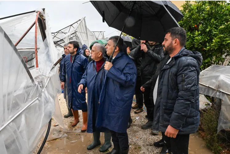 Demre’deki incelemelerin ardından Kumluca ilçesine geçen Vali Şahin, burada da aşırı yağış ve fırtınadan etkilenen tarım alanları, seralar, işletmeler ve çeşitli yapılarda incelemelerde bulundu. Sahada yürütülen çalışmaları yakından takip eden Vali Şahin, AFAD, Tarım ve Orman İl Müdürlüğü ile ilgili kurum ve kuruluşların yürüttüğü çalışmaları yerinde inceledi. Saha incelemelerinin ardından tarım alanları, seraları ve yapıları zarar gören vatandaşlarla bir araya gelen Vali Hulusi Şahin, yaşanan zararlara ilişkin talepleri dinledi.
