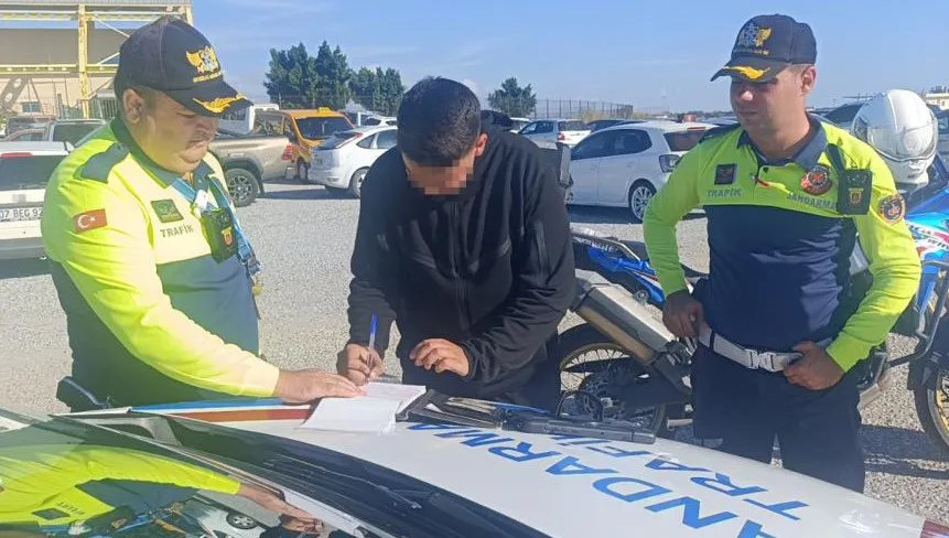 Ceza uygulanan sürücülerden A.C.'nin jandarma trafik ekiplerinin dur ihtarına uymadığı, kaçmak isterken düşmesi sonucunda durdurulduğu bildirildi. A.C'ye ehliyetsiz araç kullanmak, abartılı egzoz, plaka takmamak, ayna takmamak ve dur ihtarına uymamaktan toplam 66 bin 677 TL para cezası uygulanırken motosikleti de trafikten men edilerek yediemin otoparkına çekildi.