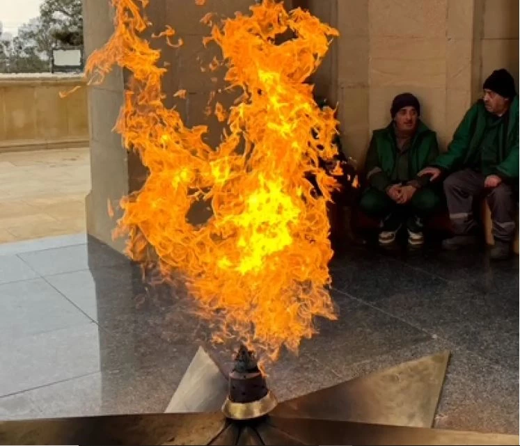 Yarım saatlik bir yolculuktan sonra Absheron Gurubu otellerinden Courtyard by Marriott Otel’e vardık. Azerbaycan’ı keşfeden Hintli turistler otelin en kalabalık müşterisiydiler. Ertesi sabah eksi iki derecedeki soğuk yürümeyi bile zorlaştırdığı için birçok kişi Londra’dakilere benzeyen bordo renkli taksilere binerken, bazıları daha ucuz olan Bolt adlı taksilere binmeyi seçti. İlk gün doğal gaz kaynağı bulunan ve Yanardağ denilen dağı ziyaret ettik. Devlet Bayrak Meydanı’ndaki dev bayrak direği tam 165 metre uzunluk ve 350 kilo ağırlıkla bir rekor kırmış. Azerbaycan Cumhuriyeti’nin Turizm Ajansı’na bağlı Ateshgah Temple adlı tapınağı gezdik.