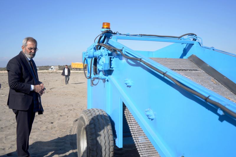 TARSUS PLAJI’NDA KUM TEMİZLEME ARACI HARIL HARIL ÇALIŞIYOR