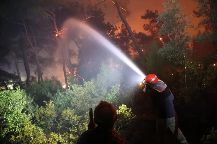 Ekipler, rüzgarın etkisiyle yayılan alevleri kontrol altına almak için gece boyu çalışma yürüttü.