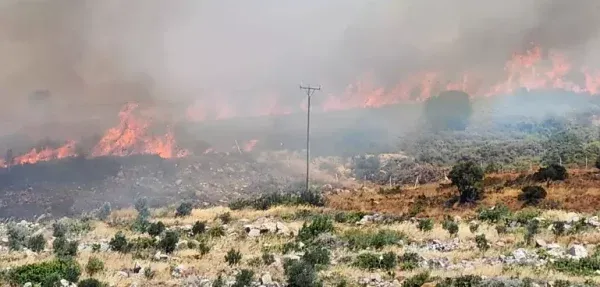 İzmir’in Menderes ilçesinde çıkan, 5 uçak ve 13 helikopter olmak üzere toplam 18 hava aracının yer aldığı yangına havadan ve karadan müdahale sürerken, bir yangın haberi de Çeşme’den geldi. Çeşme Germiyan Mahallesi’ndeki kırsal alanda çıkan yangına; 2 uçak ve 1 helikopter olmak üzere havadan ve karadan müdahale sürüyor.
