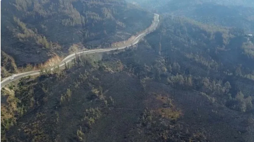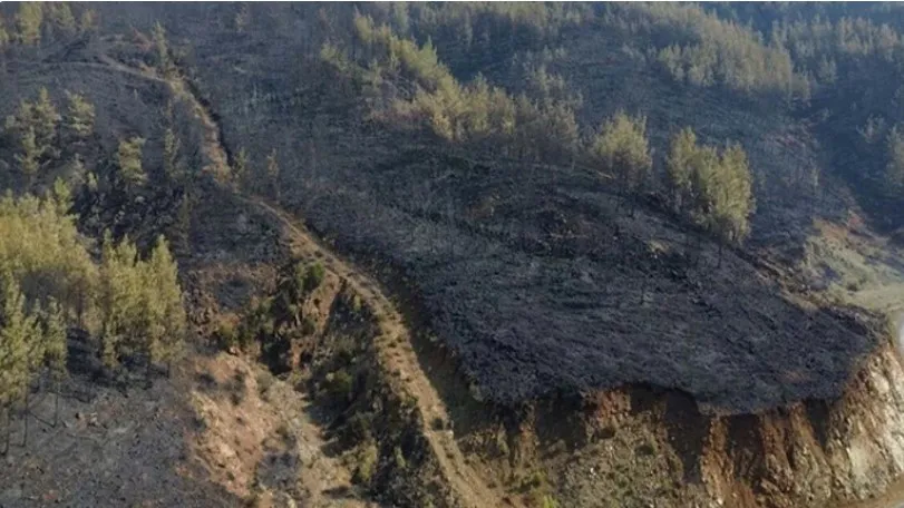 Görüntülerde, geniş bir alanın küle döndüğü, bazı bölgelerden ise dumanların yükselmeye devam ettiği görüldü.