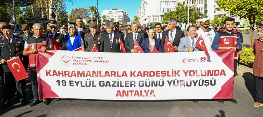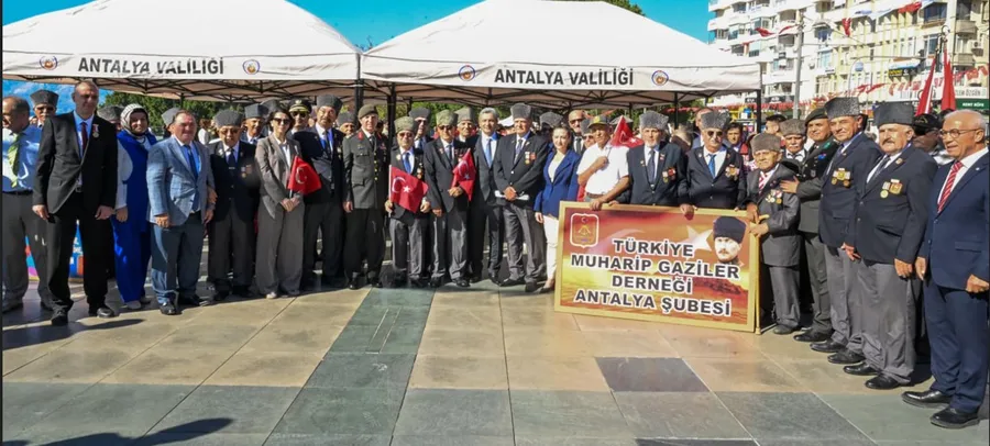 Cumhuriyet Caddesinde Kahramanlarla Kardeşlik Yolunda Gaziler Günü Yürüyüşüyle başladı. Cumhuriyet Meydanı'nda bulunan Atatürk Anıtı'na çelenk sunumuyla devam eden törene, Antalya Valisi Hulusi Şahin, Antalya Cumhuriyet Başsavcısı Yakup Ali Kahveci, Garnizon Komutanı Tümgeneral Sinan Eren, Antalya Büyükşehir Belediye Başkan Vekili Büşra Özdemir, Antalya Emniyet Müdürü Sabit Akın Zaimoğlu, Antalya İl Jandarma Komutan Yardımcısı Albay Ali Uslu, Türkiye Muharip Gaziler Derneği Antalya Şube Başkanı Zeynel Abidin Sezer, siyasiler, askerler, güvenlik güçleri, gaziler ve vatandaşlar katıldı.