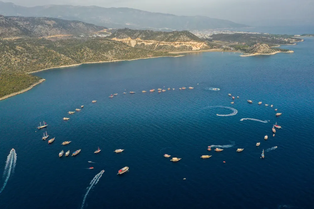Üçağız ve Çayağzı tekne kooperatiflerine kayıtlı yaklaşık 80 tekne, Demre ve Üçağız limanlarından hareket ederek, Gökkaya Koyu'nda buluştu. Kortej eşliğinde Çayağzı Limanı'na gelen tekneler, hilal şekli oluşturdu. Havadan parasailing ile Türk bayrağı ve 100. yıl bayrağı açılırken, müzikler ve 10. Yıl Marşı eşliğinde etkinlik son buldu.