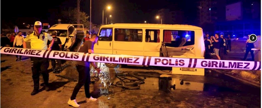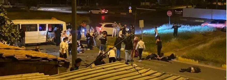 Kaza, dün gece 00.15 sıralarında Antalya'nın Kepez ilçesi Habipler Mahallesi Muammer Aksoy Caddesi ile Adnan Kahveci Caddesi'nin kesişiminde meydana geldi. Düğünden döndükleri öğrenilen Ahmet E. (48) idaresindeki 09 HJ 286 minibüs ile Gökhan G.'nin kullandığı 07 BON 549 Audi marka araç kavşak sisteminde çarpıştı. Çarpışmanın etkisiyle minibüs geldiği istikamete ters dönerken araçta bulunan yolcular ise camlardan yola savruldu.