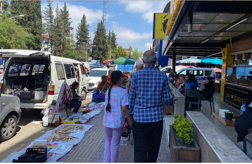 Pazar alanın çevresinde sebze ve meyve gibi gıda ürünlerinin yanı sıra, giysi ve çeşitli işporta mallarının satıldığı tezgahlar, kaldırımları tamamen işgal etmekle kalmıyor, yol ortasına kadar yayılıyor. Yol kenarında park edilen araçlar da bu kaosa eklenince, alışveriş yapmak isteyen veya Pazar dönüşü yürüyen vatandaşlar, durumdan şikayetçi.