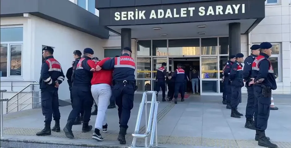 Serik Cumhuriyet Başsavcılığı talimatları doğrultusunda İlçe Jandarma Komutanlığı ve JASAT ekipleri, 10 Şubat'ta ilçe merkezinde 'torbacı' tabir edilen uyuşturucu satıcısı 8 kişinin evine operasyon düzenledi. Operasyonda bonzai uyuşturucu maddesi ele geçirilirken, 8 kişi gözaltına alındı. 1'i kadın 8 şüpheli jandarmadaki işlemlerinin ardından adliyeye sevk edildi. Adliyedeki işlemleri tamamlanan şüphelilerden S.O., İ.G., H.Y., B.T., S.A. ve M.T. tutuklanırken, F.O. ve F.B. ise adli kontrolle serbest bırakıldı.