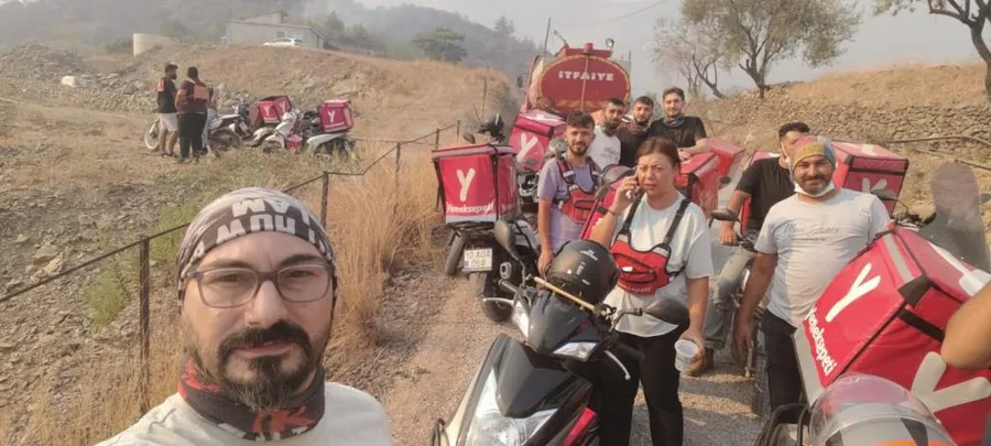 Moto-kuryeler, araçların gidemedikleri noktalarda ekiplere su, ayran ve yemekleri ulaştırdılar. Hem ihtiyaçları taşıdılar hem yangın söndürme çalışmalarına destek verdiler