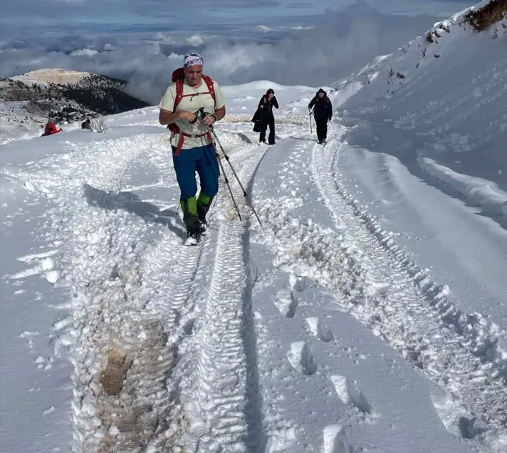 Konyaaltı sahiline yaklaşık 1 saat mesafedeki Saklıkent Kayak Merkezi'nin de bulunduğu bölgeye kar yağışı sonrasında doğa yürüyüşleri başlatıldı. Beydağlarına ilk doğa yürüyüşünü düzenleyen grupta yer alanlardan Serhat Güner, Saklıkent Kayak Merkezi'nin olduğu bölgede ilk kar yağışının bu yıl 6-7 Aralık tarihlerinde gerçekleştiğini belirterek, 7 Aralık Pazar sabahı bölgeye yaklaşık 20 kişilik grupla kar yürüyüşü düzenlediklerini söyledi. Güner, “Bir grup doğa sporcusu Saklıkent Kayak Merkezi'nden başlayarak Bakırlı dağı zirvesine kar yürüyüşü etkinliği gerçekleştirdik. Kar kalınlığı zirveye yakın bölgede 40 santime ulaştı. Hava sıcaklığı yürüyüş boyunca sıfır derecenin altındaydı" dedi. /MİLLİYET.COM.TR