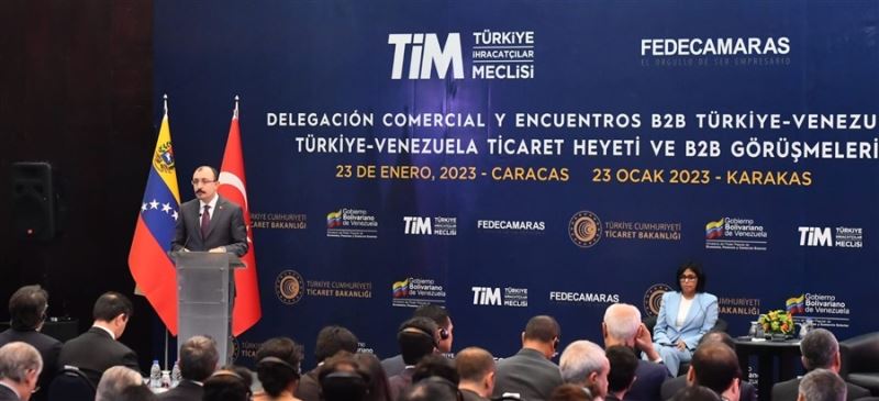 "Venezuela'nın en çok ihracat yaptığı ülkeler sıralamasında ülkemiz 2021'de ikinci sıraya yükselmiş durumdadır. Tek taraflı yaptırımların yol açtığı zorluklar, salgın ve küresel sorunlara rağmen bunu başarıyoruz. İkili ticaret hacmimizi, Sayın Cumhurbaşkanımızın (Recep Tayyip Erdoğan) belirlediği hedef doğrultusunda kısa vadede 3, orta vadede 5 milyar dolar seviyesine çıkartmak istiyoruz. Bu çerçevede, ticari ilişkilerimizi tarımdan turizme, enerjiden lojistiğe kadar ekonominin her alanında çeşitlendirmeye önem veriyoruz. Türk Hava Yolları (THY) haftanın her günü İstanbul-Karakas yolcu hizmeti veriyor, aynı zamanda Venezuela yönüne de hava kargo taşımacılığı hizmetlerine başlamış bulunuyor."