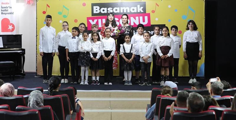 Herkes için sanat parolasıyla kültür-sanat ve hobi kurslarını Bayraklı Sanat ve Müzik Akademisi (BASAMAK), çatısı altında toplayan Bayraklı Belediyesinin kursiyerleri, yıl sonu gösterileriyle beğeni topluyor. Her yıl binlerce kişinin ücretsiz faydalandığı etkinlikler kapsamında 18 branşta kurs düzenleniyor. Kursiyerler, yıl boyunca öğrendiklerini de yıl sonu etkinliklerinde sahneye taşıyor. Bu kapsamda gösterilerin ilk gününde Bayraklı Belediyesi Çocuk Korosu, İhsan Alyanak Kültür Merkezi’nde performanslarıyla izleyenlerden tam not aldı. Çocukların hep bir ağızdan okuduğu marşlara ve şarkılara izleyenler de eşlik etti. Konser sonunda kursiyerler ayakta alkışlandı.