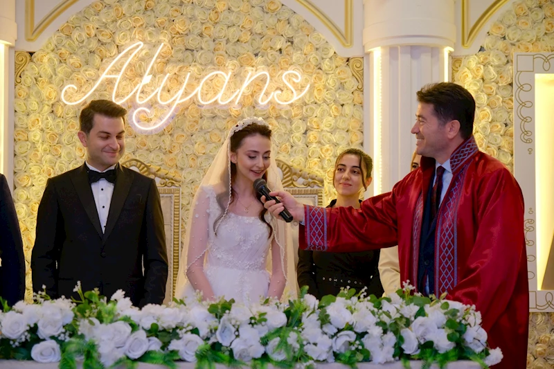 Başkan Kaya, Sedanur Kılıç ile damat Ahmet Kaya’ya ayrı ayrı evlenme iradelerini beyan eden soruyu yöneltti. Sedanur Kılıç ve Ahmet Kaya çifti davetliler huzurunda ‘evet’ cevabını vererek hayatlarını birleştirdi.