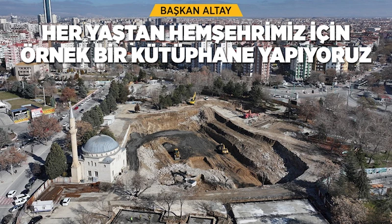 “Konya Modeli Belediyecilik” anlayışıyla ihtiyaç duyulan her alanda yürüttükleri çalışmalara devam ettiklerini aktaran Başkan Altay, “Şehir Kütüphanesi inşaatımızda çalışmalara başladık. Eski belediye bahçemizde ağaçları koruyarak gençlerimiz başta olmak üzere her yaştan hemşehrimiz için örnek bir kütüphane yapıyoruz. ‘Çok güzel olacak’ lafla olmaz, icraatla olur. Şehir kütüphanemiz de çok güzel olacak” ifadelerini kullandı.