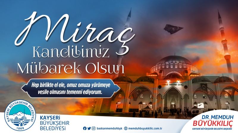 “Peygamber Efendimiz Hz. Muhammed’in (S.A.V.) Miraç mucizesinin gerçekleştiği bu mübarek gecede, üç ayların içerisinde, tövbe kapıları sonuna kadar açık. Dualarımızı bol bol edeceğiz. Müminlere namaz hediye edilen Miraç gecesinde namazımızı kılacağız. Miraç Kandili’nin gündüzü ve gecesini bu şuurla dolu dolu geçirerek, manevi dünyamızı aydınlatacağız. Miraç Kandili, içerisinde büyük hikmetler biriktiren, mucizelerle dolu bir zaman dilimi. Hassas dönemlerden geçtiğimiz ve mucizelere tanıklık ettiğimiz şu günleri Rabbim, Miraç hürmetine, daha kolay atlatmamızı nasip eylesin. Bu vesileyle başta Kayserili hemşehrilerimizin ve tüm İslam âleminin Miraç Kandili’ni kutluyor, kandilin bütün insanlığa huzur ve mutluluk getirmesi, ülkemiz ve milletimiz için hayırlara vesile olmasını temenni ediyorum.”