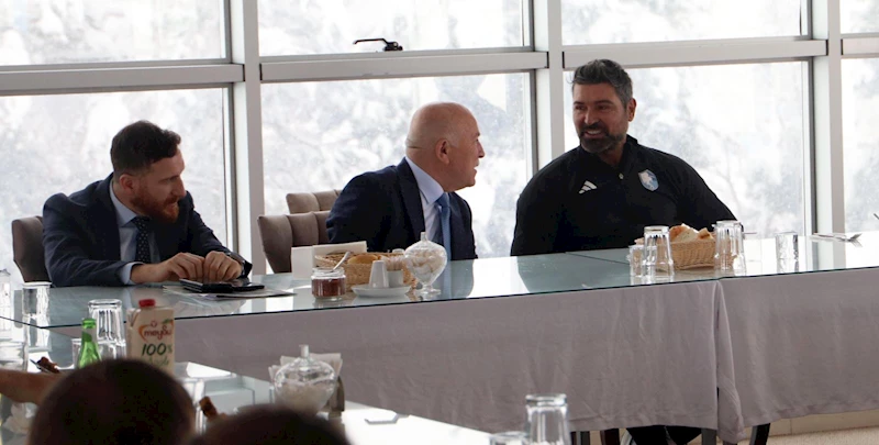 Erzurum Büyükşehir Belediye Başkanı Mehmet Sekmen, Erzurumspor’u ziyaret ederek, futbolculara moral verdi. Erzurumspor Kulüp Başkanı Ahmet Dal, Teknik Direktör Hakan Kutlu ve futbolcularla öğle yemeğinde bir araya gelen Başkan Mehmet Sekmen, futbolculara hitap ederek, “Kulüp Başkanımız, hocamız, teknik heyetimiz ve yönetimimizle birlikte emsalsiz ve eşine ender rastlanır bir azim ve kararlılıkla her türlü zorluğa karşı 1. Lig’de onurlu bir mücadele örneği sergiliyoruz. Altyapımızdan takviye ettiğimiz Erzurumlu gençlerimiz ve siz tecrübe yumağı olan ağabeyleriyle birlikte milyon dolarlık takımlara karşı fair play ruhuyla çok güzel maçlara imza atıyoruz. Dün olduğu gibi bugün de yanınızdayım. Armamıza olan tutkumuzla Mavi Beyazlı camiamıza olan desteğimiz 10 yıldır devam ediyor ve devam da edecek… İnşallah ligdeki başarı grafiğimizi artırmaya ve sporseverlere keyif seyri yüksek maçlar izlettirmeye devam edeceğiz” dedi. Kulüp Başkanı Ahmet Dal da, “Sayın Başkanımızın destekleriyle Mavi Beyazlı camia olarak 10 yılda Dünya’da eşine ender rastlanır başarılara imza attık. Sayın Başkanımızın futbola, Erzurumspor’umuza olan tutkusu bizlere de ayrı bir heyecan ve çalışma azmimize de ayrı bir şevk katıyor. Onursal Başkanımıza kulübümüze olan desteklerinden dolayı şükranlarımızı sunuyoruz” diye konuştu.