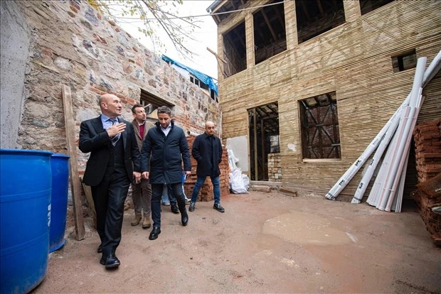 İzmir Büyükşehir Belediye Başkanı Tunç Soyer, kentin simge bölgelerinden Basmane’de tarihi aksı canlandıracak Oteller Projesi’nin çalışmalarını yerinde inceledi. Başkan Soyer’e kent gözlemcisi yazar Orhan Beşikçi de eşlik ederek Oteller Sokağı’nın tarihi hakkında bilgi verdi. Basmane Pazaryeri Mahallesi’nde aralarında Tevfik Paşa Konağı, ünlü yazar Tarık Dursun K’nın bir süre yaşadığı ev olmak üzere yapımı süren 6 yapının restorasyonu yüzde 55 oranında tamamlandı.