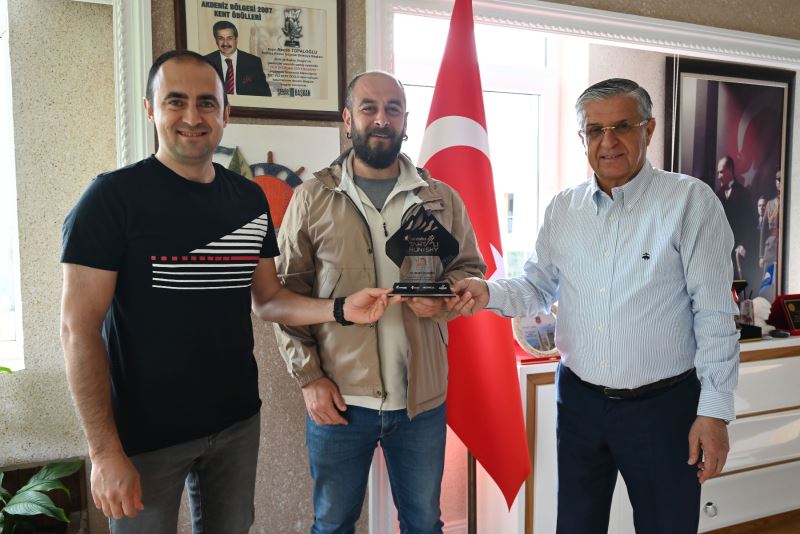 Corendon Airlines Tahtalı Run To Sky Yarışları Koordinatörü Polat Dede, Kemer Belediye Başkanı Necati Topaloğlu'nu makamında ziyaret ederek, bu yıl 9'ncusu düzenlenen yarışlara verdiği desteklerden dolayı teşekkür plaketi verdi.