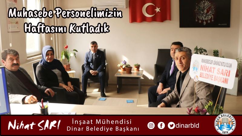 Ziyaretinde; Devletimizle esnaf arasında köprü vazifesi gören muhasebecilerin çok önemli bir kamu hizmetini ifa ettiklerine vurgu yapan Dinar Belediye Başkanımız Nihat Sarı, Mali Hizmetler Müdürü Mehmet Ali Özel ve personellerin gününü kutlayarak, aileleri ile sağlıklı bir ömür temennisiyle çalışmalarında başarılar diledi.