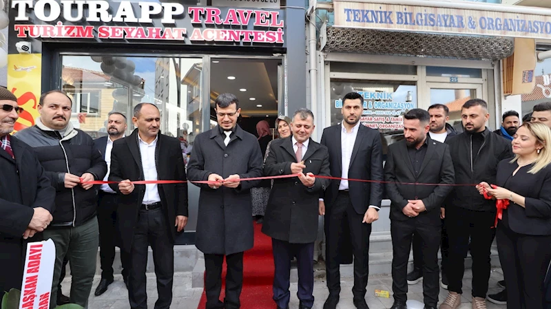Belediye Başkanımız Serkan Koyuncu ilçemiz Konya Caddesi’nde faaliyete başlayan Tourapp Travel Turizm Seyahat Acentesi iş yerinin açılışına katıldı.