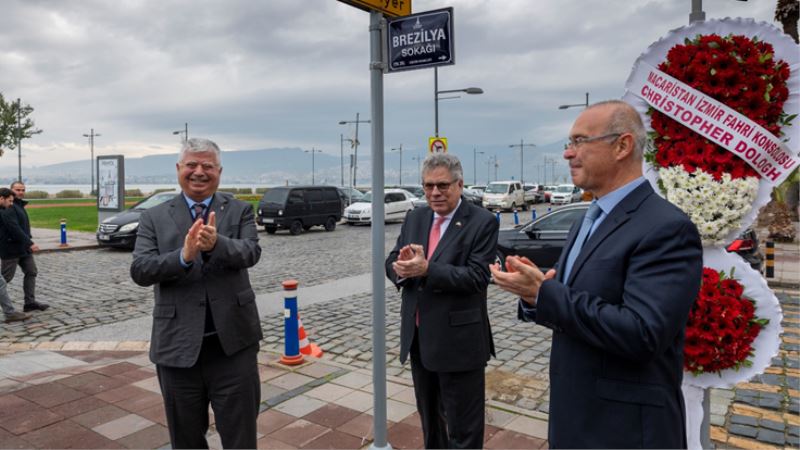 Alsancak’taki Dr. Mustafa Enver Bey Caddesi’nin Cumhuriyet Bulvarı ile kesiştiği bölüm iki ülke arasındaki ilişkileri güçlendirmek amacıyla Brezilya Sokağı olarak isimlendirildi. Düzenlenen törende konuşan İzmir Büyükşehir Belediyesi Başkan Vekili Mustafa Özuslu, “Brezilya’da Türkiye sokağı var. Bizler İzmir’in attığı bu adımın dünyanın en önemli ülkelerinden olan Brezilya ve Türkiye arasında bir köprü olacağına inanıyoruz” dedi.