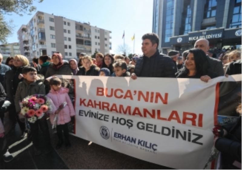 Büyük bir titizlikle sürdürdüğü çalışmalarını tamamlayan BUCAKUT, eve dönüş yaptı. BUCAKUT üyelerini Buca Belediyesi önünde Belediye Başkanı Erhan Kılıç, mesai arkadaşları, aileleri ve Bucalılardan oluşan büyük bir kalabalık karşıladı. Duygu dolu anların yaşandığı karşılamada konuşan Buca Belediye Başkanı Kılıç, İzmir depreminin ardından bir arama kurtarma birimi kurmak için harekete geçtiklerini hatırlatarak, “2 yıl boyunca almamız gereken bütün eğitimleri aldık. BUCAKUT’a hiç iş düşmesin isterdik. Yaşadığımız deprem gibi kurtaracağı nokta olmasın isterdik ama maalesef Türkiye deprem bölgesi, deprem gerçeği var ve büyük bir felaket yaşandı. Depremin olduğu ilk andan itibaren BUCAKUT derhal harekete geçti. Çok büyük bir acının içinde olduğumuz bugünlerde, sizin çalışmalarınız asla unutulmayacak. İyi ki varsınız. Sizinle gurur duyuyorum” dedi.