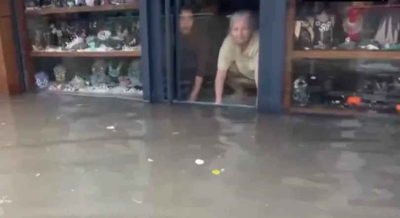 Çıkamıyor insanlar dışarı. Dükkanın içinde mahsurlar. Kapıyı tutmuşlar dükkana su girmesin diye. 'Açamıyoruz' kapıyı diyor.