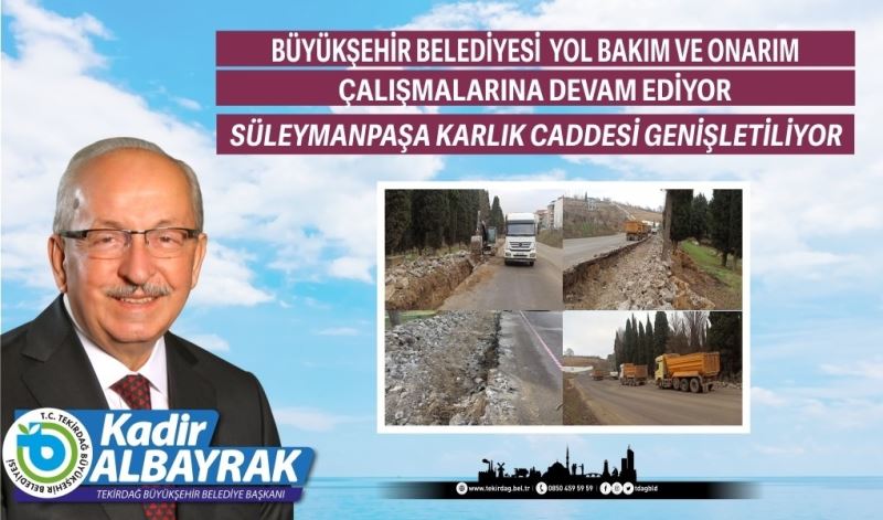 Konu hakkında açıklama yapan Tekirdağ Büyükşehir Belediye Başkanı Kadir Albayrak, Tekirdağ’ın yol ağını güçlendirmek ve vatandaşlara daha konforlu bir ulaşım hizmeti sunmak amacıyla çalışmalara devam ettiklerini belirterek, “Yol yapım, onarım ve bakım çalışmalarımız 11 ilçemizde eksiksiz sürdürüyoruz. Süleymanpaşa ilçemize bağlı Karlık Caddesinin genişletilebilmesi için Asri Mezarlık Duvarının içeri alınma işlemi yaklaşık 2.015.916.11 TL’dir. Çalışmamızın vatandaşlarımıza ve ilçemize hayırlı olmasını diliyorum.”dedi.