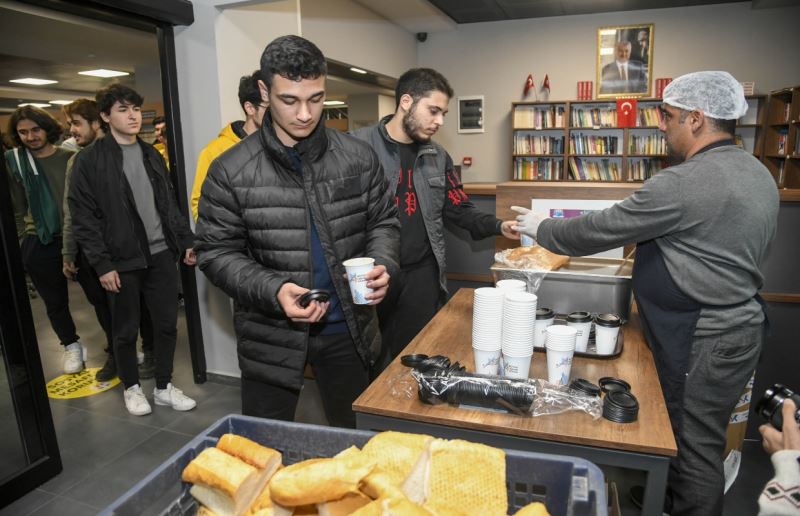 Kütüphanesi’nde ders çalışan öğrencilere Adana Büyükşehir Belediyesi’nce çorba
