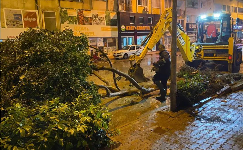 İlçe merkezindeki Eski Postane ve Noel Baba Caddesi'nde iki ağaç devrildi. Aynı saatlerde ilçede meydana gelen hortumda toptancı halinde bir işyerinin çatısı zarar gördü. Belediye ekipleri devrilen ağaç ve kopan tellerin kaldırılması için çalışma başlatırken, vatandaşlar yaşanan olumsuzluklar nedeniyle zor anlar yaşadı. /TRTHABER
