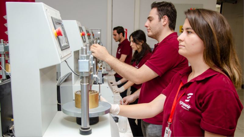 Ercüment Aysert, “Zemin dayanımını ölçmek için tek eksenli cihazda basınç uygulayarak sondaj yaparak aldığımız karot numunelerinin hangi seviyelerde kırılacağını test ediyoruz. Yaptığımız deney sonucunda da o zeminde nasıl bir bina yapılması, kaç katlı yapılması, depreme dayanıklı olarak inşa edilmesi gerektiği sonucunu çıkarıyoruz. Zemin sınıfında aldığımız örneğin kil numuneleri ile farklı bir test uyguluyoruz. Bunda da zemindeki sıvılaşma riskini, sıvılaşmanın seviyesini belirliyoruz. Binalar yapılırken dikkat edilmesi gereken bütün testleri burada yapabiliyoruz” dedi.