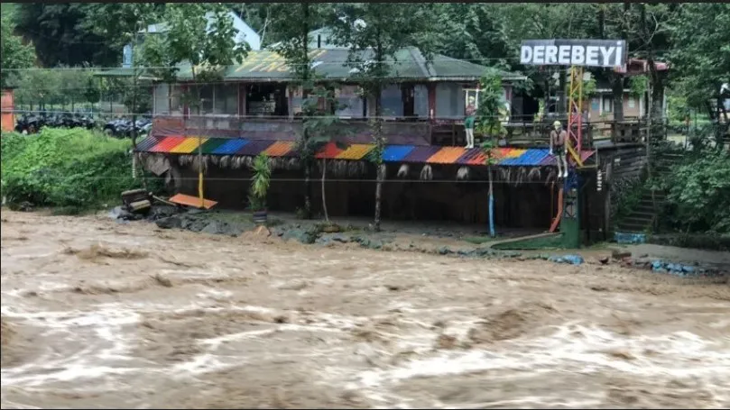 Meteorolojiden alınan bilgiye göre; yağışların saat 18.00'e kadar devam edeceği bildirilirken; Çamlıhemşin ilçesi Ayder Yaylası yolu üzerinde boş haldeki 2 bungalov sele kapıldı.