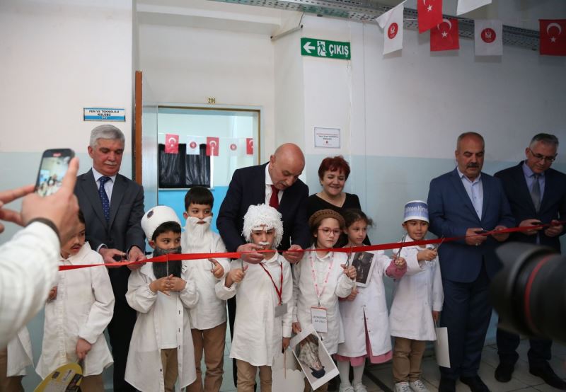 Başkan Altınok konuşmasının ardından katılımcılarla birlikte kurdele keserek laboratuvar sınıfının açılışını gerçekleştirdi.
