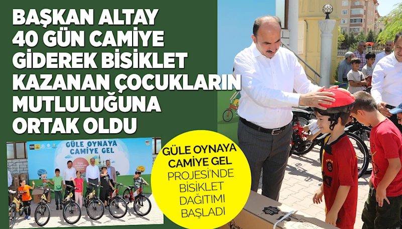 Konya Büyükşehir Belediye Başkanı Uğur İbrahim Altay, “Güle Oynaya Camiye Gel Projesi” kapsamında Karatay El Aksa Camii’nde düzenlenen bisiklet dağıtım programına katılarak bisiklet almaya hak kazanan çocuklara bisikletlerini hediye etti.