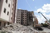 Merkez Mahallesi Osman Paşa Caddesi'nde riskli olduğu gerekçesiyle 6 blok ve 288 daireden oluşan Hizmet Sitesi, kontrollü şekilde yıkılmıştı. Bölgeye 2+1 ve 3+1 olmak üzere otoparklı modern ve depreme dayanıklı binalar yapılıyor.