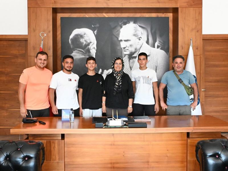 Feslikan Yağlı Güreşi'nde belediyemiz adına mücadele ederek 2'inci olan Yiğit Dulluç'u, Bursa 15.Softaoğlu Mehmed Pehlivan Yağlı Güreş'inde mücadele ederek 3. olan Serhat Atalay'ı ve yine belediyemiz adına yarışan ve son 16’ya kadar mücadele eden Kerem Berk Akdağ'ı' tebrik ederek, hediyelerini takdim ettik.