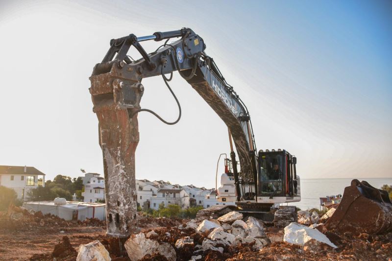 Beymelek Mahallesi İskele Mevkii’nde, yaşanan sel felaketinden zarar gören kilitli parke yolun yenileme çalışmaları devam ediyor.