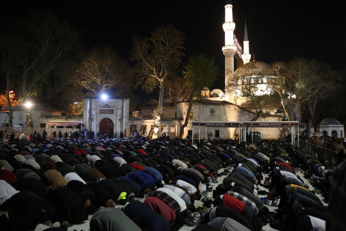 Teravih namazı öncesi, Eyüpsultan Camii imam hatiplerinden Kuran-ı Kerim tilaveti ve sohbet dinleyen vatandaşlar ardından teravih namazı ile geceyi taçlandırdı. Topluca edilen dualara hep bir ağızdan “âmin” denildi.