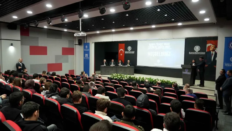 Karatay Kaymakamı Cengiz Ayhan ve Belediye Başkanı Hasan Kılca, KTO Karatay Üniversitesi'nde düzenlenen programda öğrencilerin sorularını yanıtlayarak deneyimlerini paylaştı.
